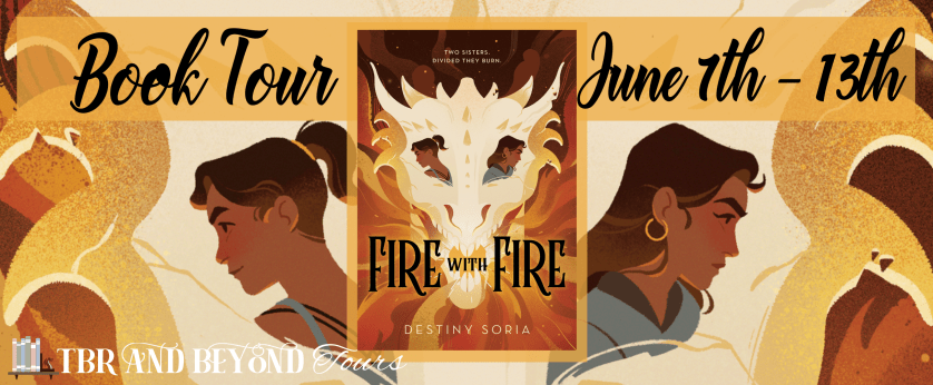 I’m so excited to be a part of the book tour for Fire with Fire by Destiny Soria that is being hosted by TBR and Beyond Tours. As it’s sometimes not always known what representation is in books, I also want to mention that there is a bisexual main character in this book as well as one who deals with anxiety.